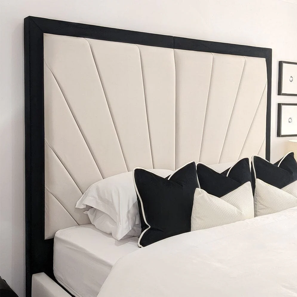 The Barcelona Sunburst Bed is a stunning blend of artistic design and modern luxury. Featuring a unique sunburst pattern on the headboard, this bed brings a dynamic and radiant focal point to any bedroom. The intricate detailing of the sunburst design is complemented by a sturdy and elegant frame, creating a perfect balance of style and function. Crafted with premium materials for durability and comfort, the Barcelona Sunburst Bed is ideal for those looking to make a bold design statement while enjoying the comfort of a luxurious sleeping experience.